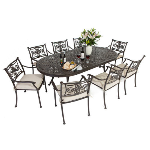 Our Knot Dining Chairs are back and better than ever! Handcrafted from durable cast aluminium and finished with a powder coating in Antique Bronze, these chairs offer both elegance and durability. The intricate Celtic knot design on the backrest brings a unique touch to any outdoor space, making them a true garden staple.